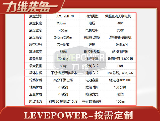 LEVE-ZGH-70特種橡膠履帶底盤采用天橡膠內(nèi)加凱夫拉纖維經(jīng)過(guò)高溫硫化擠壓成型,材質(zhì)輕、耐磨性能強(qiáng),是一款不錯(cuò)機(jī)器人橡膠履帶。